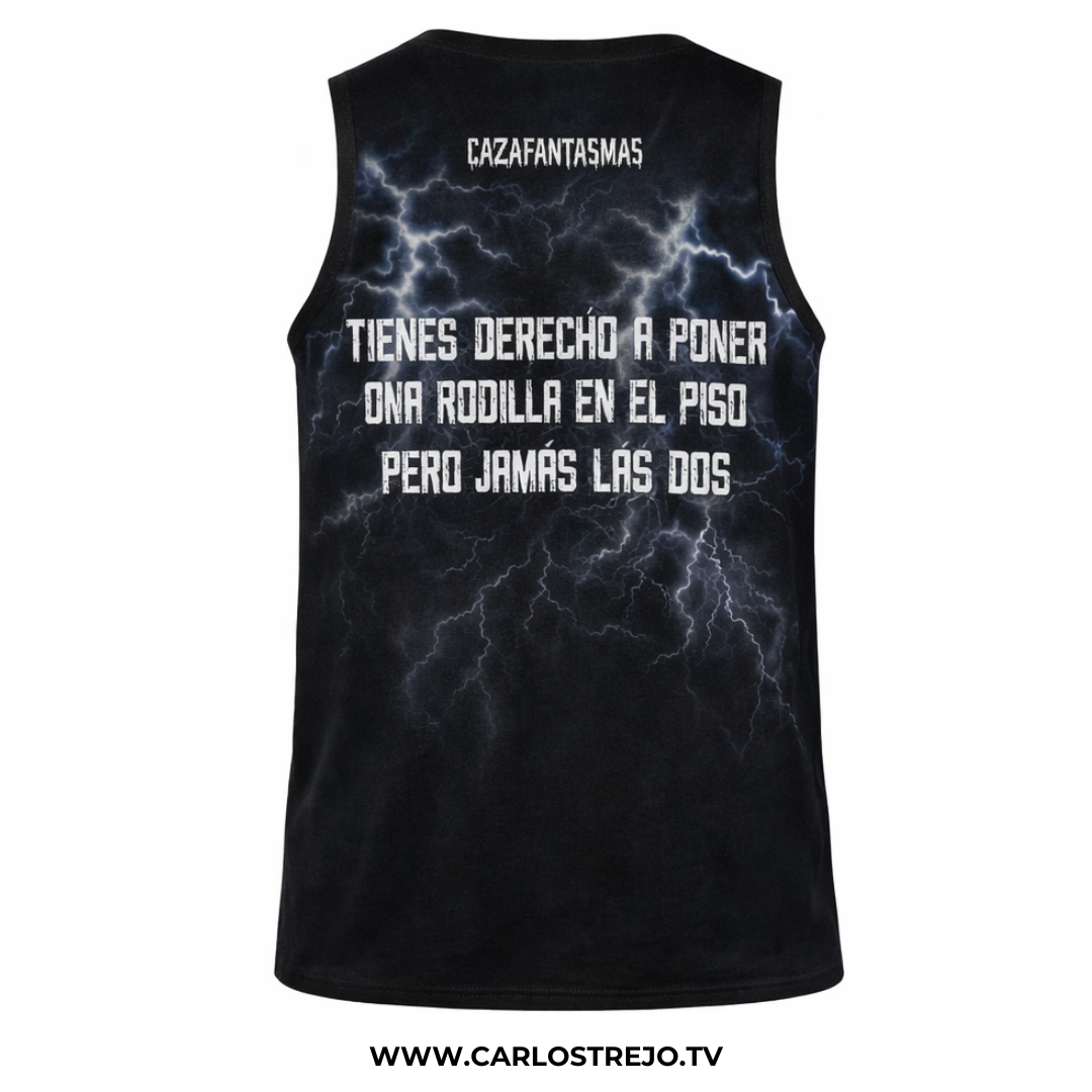 El corte sin mangas potencia la estética rockera y dominante que distingue a quienes no se rinden.